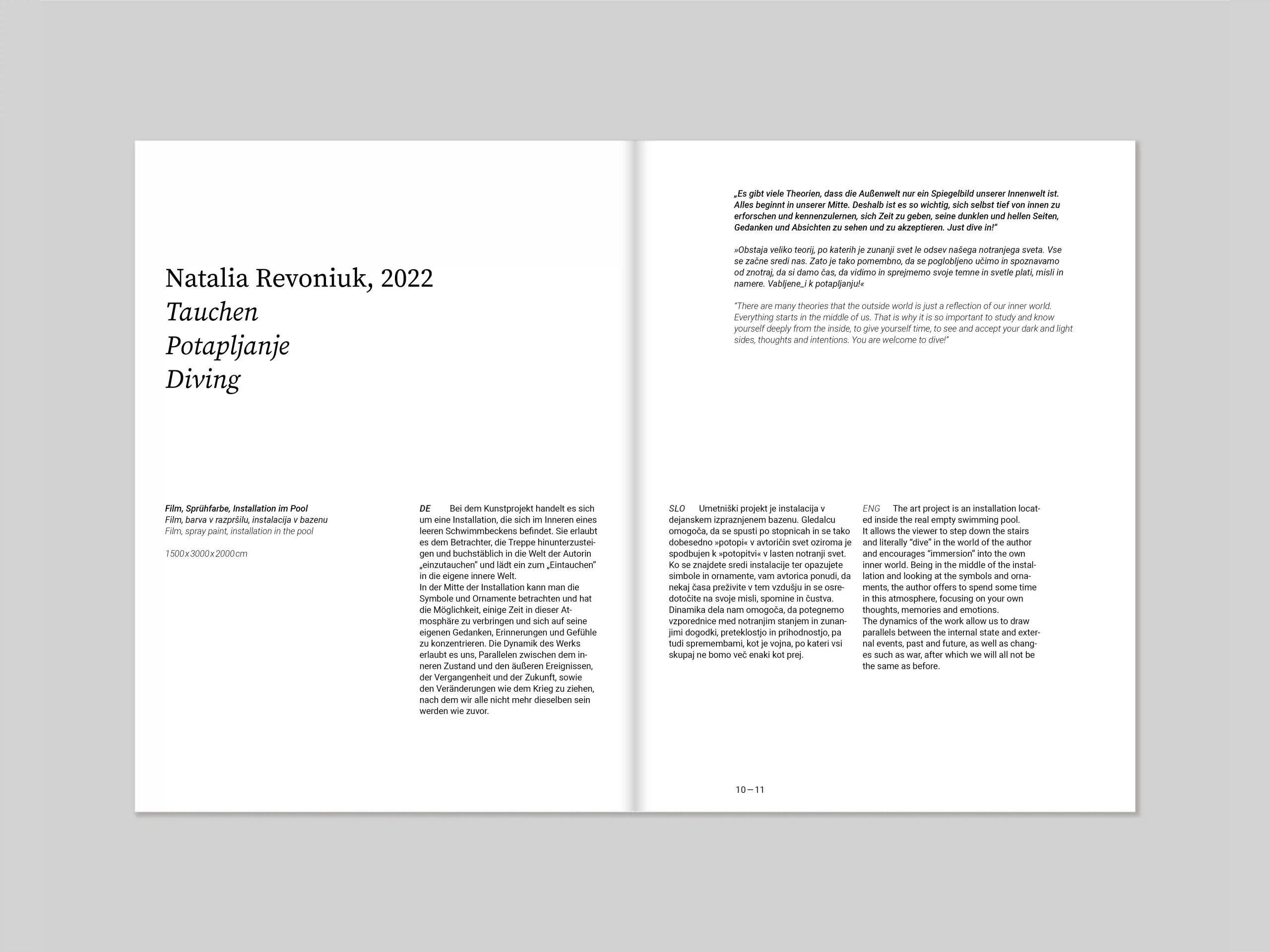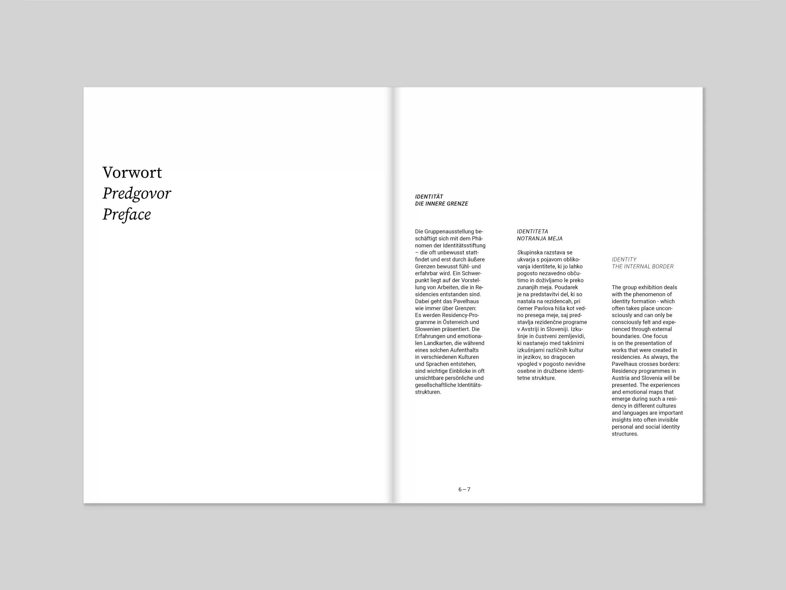 The catalogue design proposal for “The Inner Border”, an exhibition at the Pavelhaus –a unique cultural institution dedicated to the Slovenian minority in Styria, Austria– captures the essence of the exhibition’s core theme: the border as an invisible line that both divides and encounters different identities.