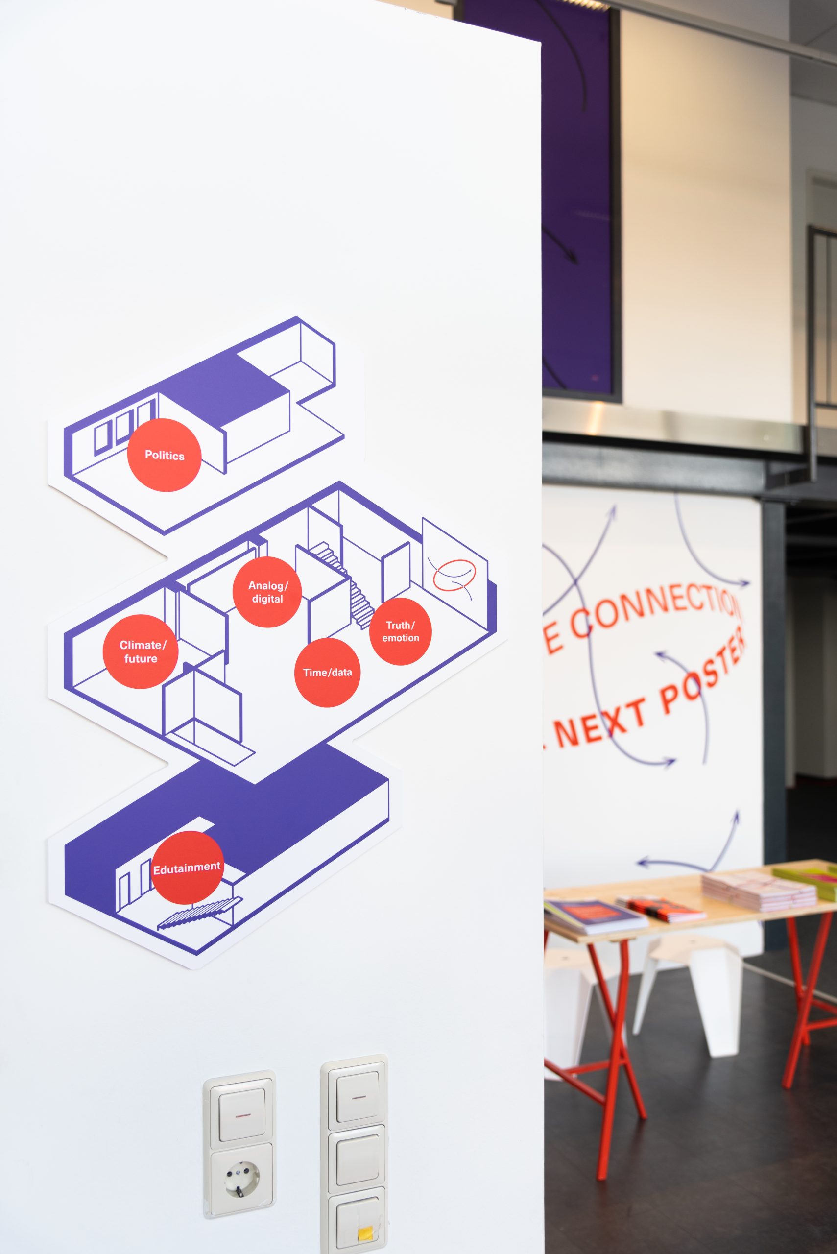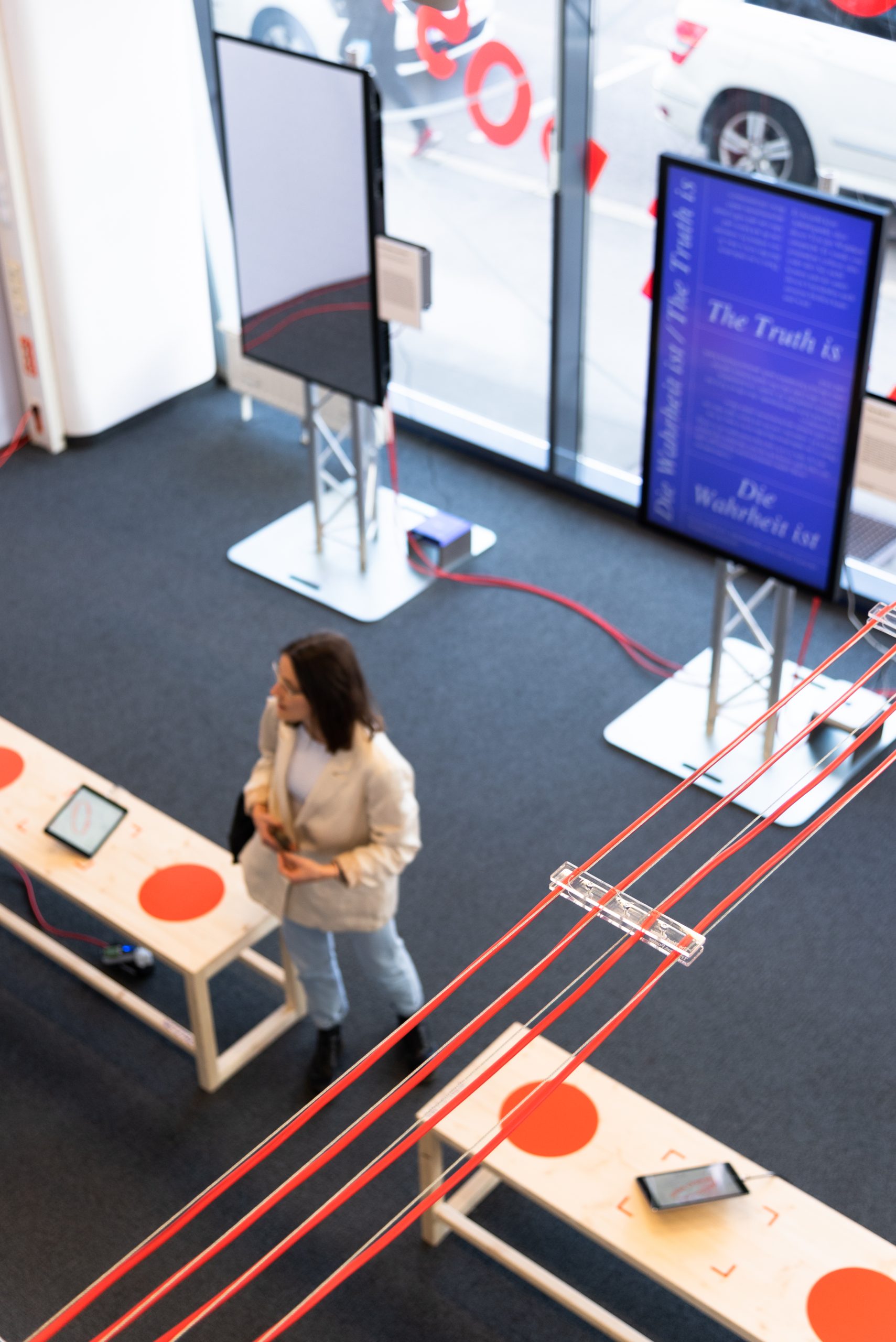 At the heart of the exhibit is the idea of interconnection, which serves as a unifying thread connecting the diverse range of projects. To bring this concept to life, the exhibit design features a network of bright red cables that connect every project, providing both power and a visual representation of the idea of infinite connections and constant exchange.